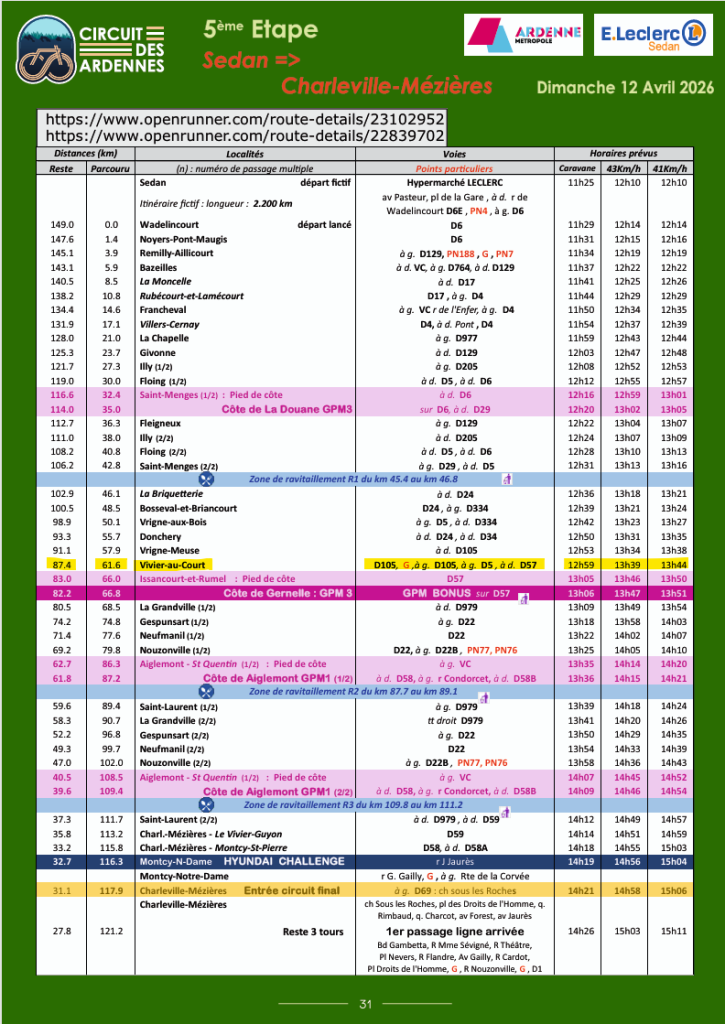 - La caravane du Circuit des Ardennes précédera les coureurs de 30 à 45 minutes.